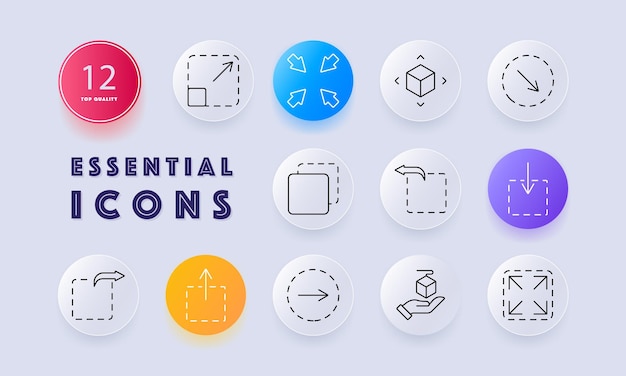 デザインセット アイコン 矢印 ドットボックス 矢印 円 持つ立方体 拡張する矢印 サイズを変更する 回転する 移動する立方体